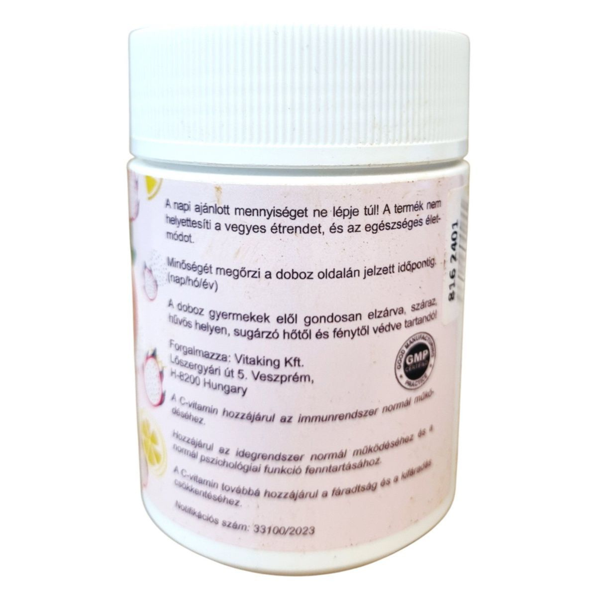 Étrend-kiegészítő sárkánygyümölcsös C-vitamin italpor gyümölccsel, bioflavonoidokkal és édesítőszerekkel. A C-vitamin hozzájárul az immunrendszer normál működéséhez. Hozzájárul az idegrendszer normál működéséhez és a normál pszichológiai funkció fenntartásához. A C-vitamin továbbá hozzájárul a fáradtság és a kifáradás csökkentéséhez.