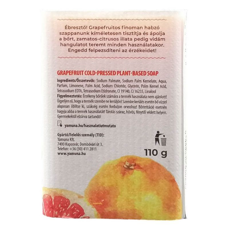Növényi olajokból készült kézműves szappan, amely grapefruit illóolajjal frissíti és tisztítja a bőrt.