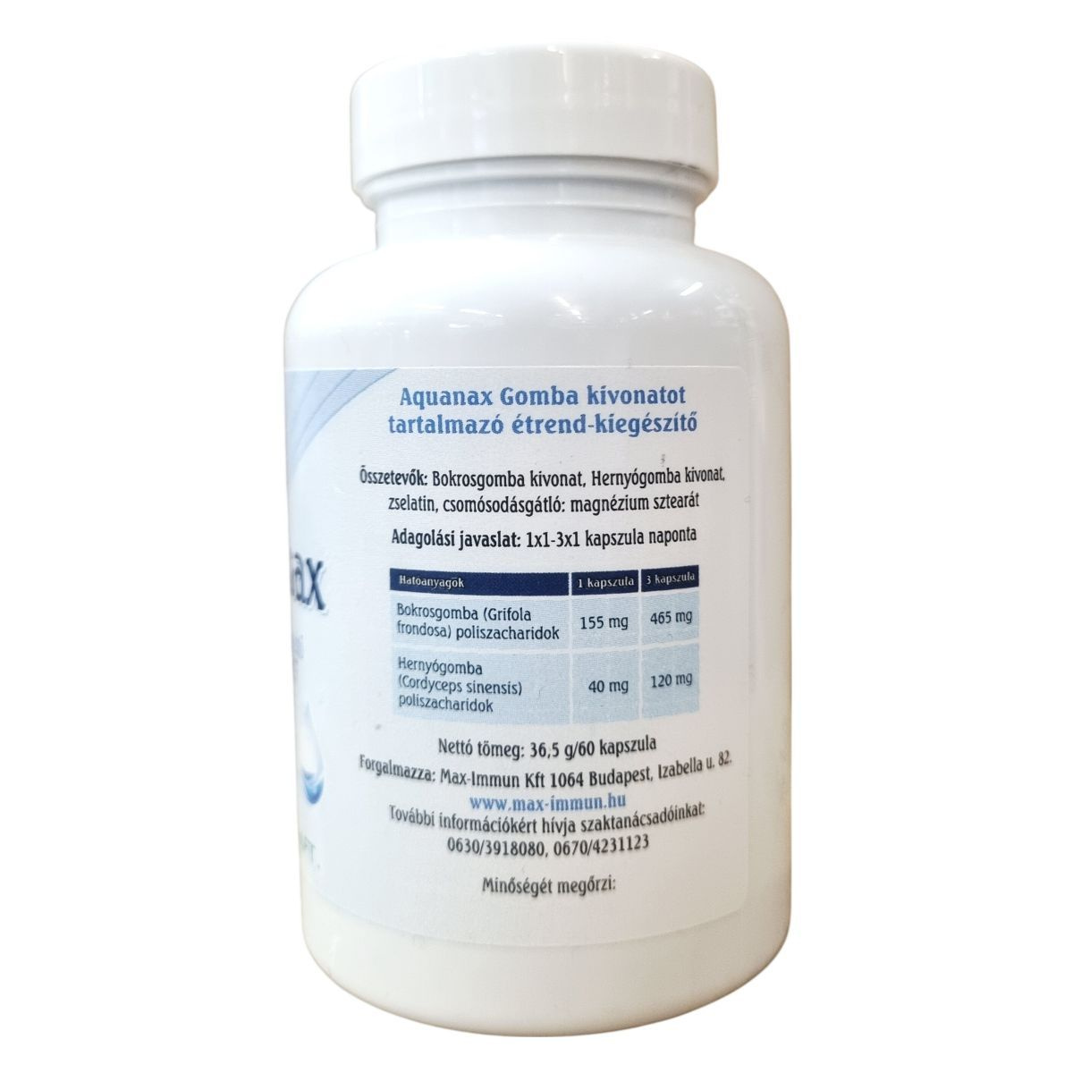 Napi 1 kapszula; az Aquanax gomba kivonat esetében 1-3 kapszula naponta.