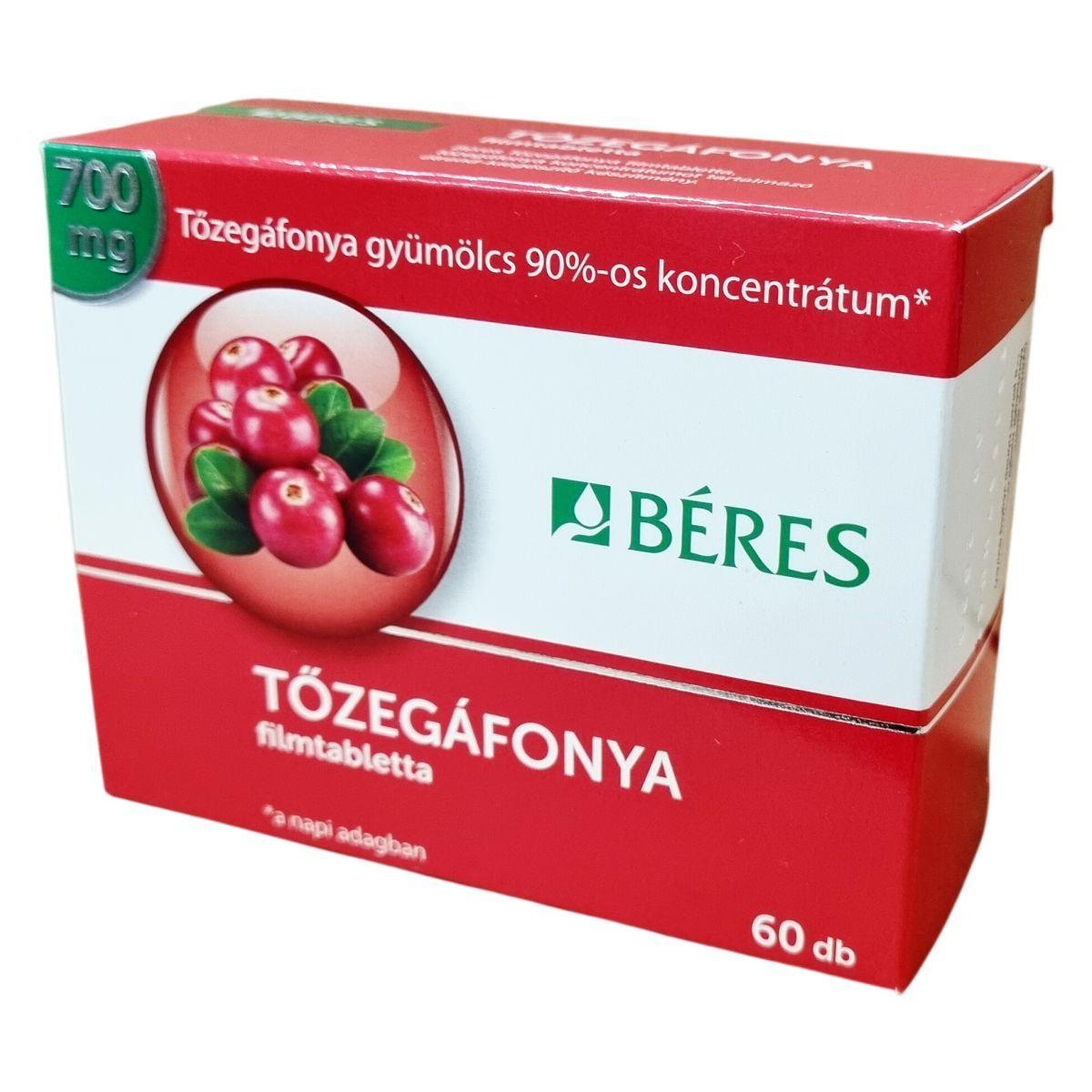 700 mg Tőzegáfonya gyümölcs 90%-os koncentrátum a napi adagban.