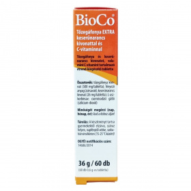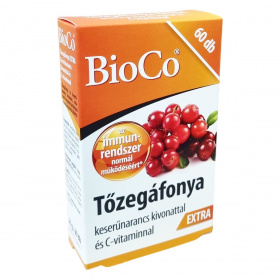 A BioCo® Tőzegáfonya EXTRA egy olyan étrend-kiegészítő tabletta, amely tőzegáfonya és keserűnarancs kivonatot, továbbá C-vitamint tartalmaz. A készítményben lévő tőzegáfonya kivonat magas dózisban van jelen, amely körülbelül 5000 mg szárított tőzegáfonya növényi őrleménynek felel meg tablettánként. A keserűnarancs kivonatból nyert bioflavonoidok, különösen a heszperidin, valamint a C-vitamin kiegészítik a készítményt. A C-vitamin hozzájárulhat az ideg- és immunrendszer normál működéséhez, a sejtek oxidatív stresszel szembeni védelméhez, illetve a fáradtság és kifáradás csökkentéséhez. A termék kizárólag Magyarországon került kifejlesztésre és előállításra, bár hatóanyagai nem magyarországi származásúak. A BioCo Magyarország Kft. rendelkezik ISO 22000 szabvány szerinti és Jó Gyártási Gyakorlat (GMP) irányelveket követő élelmiszerbiztonsági tanúsítással, amely garantálja a magas minőséget és biztonságot. Figyelni kell arra, hogy a termék nem helyettesíti a kiegyensúlyozott étrendet, és a napi ajánlott mennyiséget nem szabad túllépni.