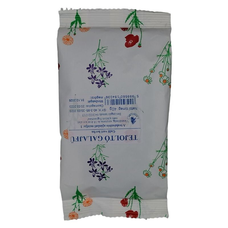 Teáját vese-, epe,- máj- és légzőszervi megbetegedésekben használják a népi gyógyászatban. Összetevők: tejoltó galajfű.