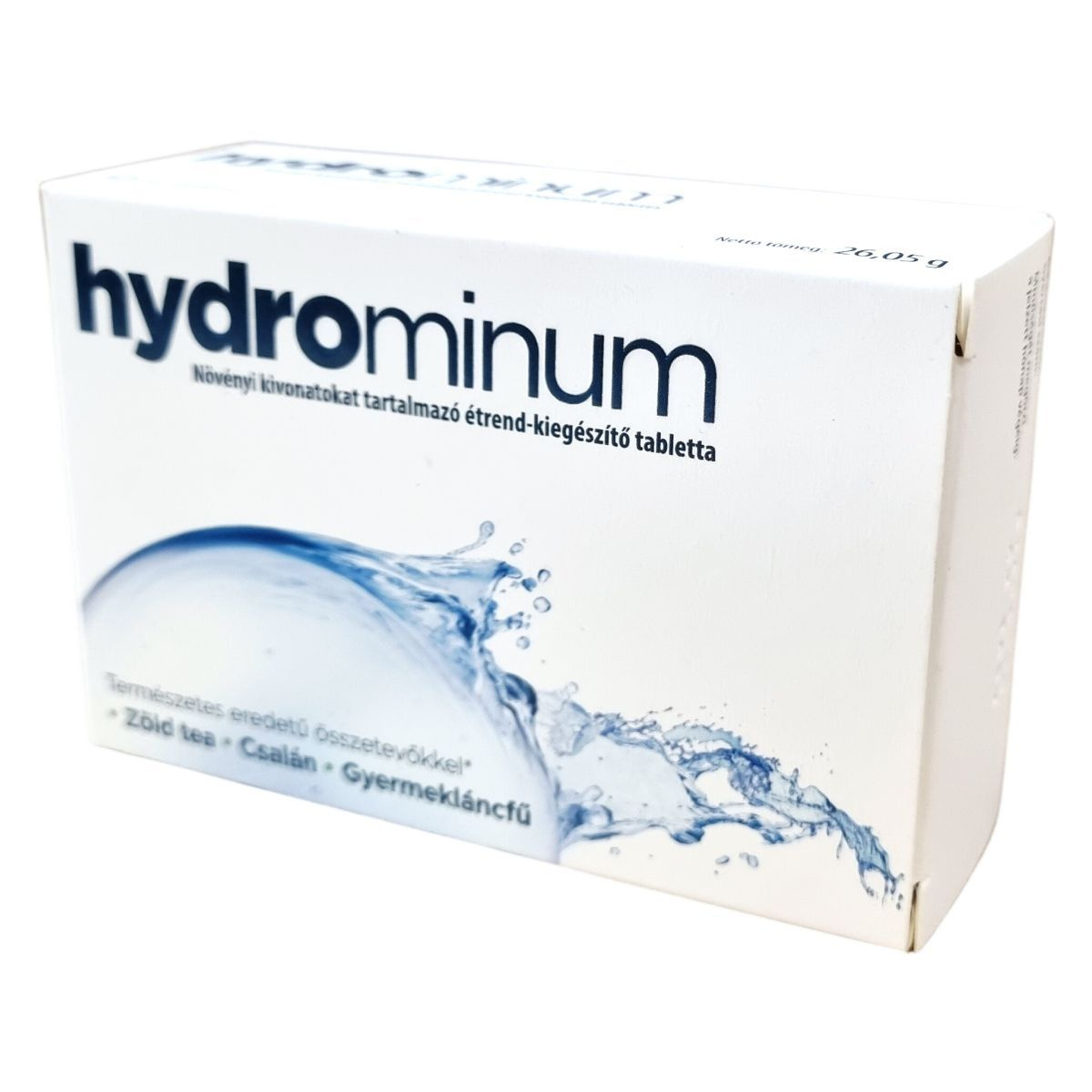 A Hydrominum étrend-kiegészítő tabletta természetes eredetű növényi kivonatokat tartalmaz. A csalán és a gyermekláncfű támogatja a húgyutak normál működését, a zöld tea antioxidáns tulajdonságokkal rendelkezik, míg az aranyvessző hozzájárul a normál vizeletkiválasztási funkcióhoz.