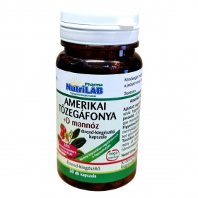 Az amerikai tőzegáfonya és D-mannóz kombinációját tartalmazó étrend-kiegészítő kapszula hozzájárulhat a húgyúti rendszer egészségének támogatásához. A termék 10% proantocianidinra standardizált, és vegetáriánusok számára is alkalmas növényi kapszulában kapható. Az étrend-kiegészítő nem helyettesíti a kiegyensúlyozott és változatos étrendet. A termék származási országa az EU, és a NutriLAB H Kft. forgalmazza.