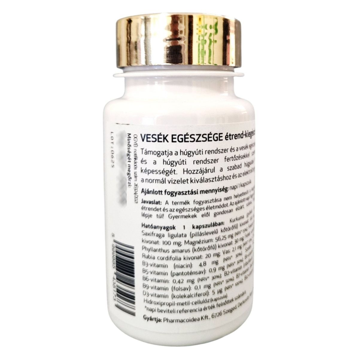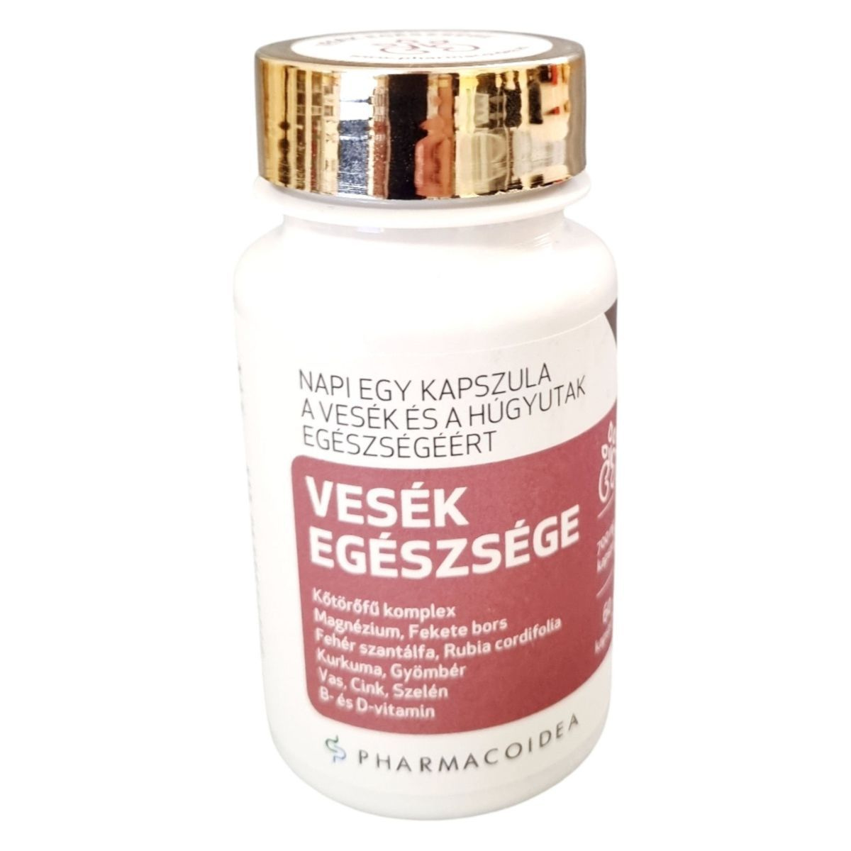 A VESÉK EGÉSZSÉGE étrend-kiegészítő célja, hogy támogassa a vesék és a húgyúti rendszer egészséges működését. A termék különböző növényi kivonatokat és ásványi anyagokat tartalmaz, mint például kurkuma, gyömbér, kőtörőfű, magnézium, vas és cink. Ezek az összetevők hozzájárulhatnak a húgyúti rendszer fertőzésekkel szembeni ellenállóképességéhez, a normál vizelet kiválasztáshoz és az elektrolit egyensúly fenntartásához. A termék napi egy kapszula fogyasztását javasolja, és hangsúlyozza, hogy nem helyettesíti a kiegyensúlyozott étrendet és az egészséges életmódot.