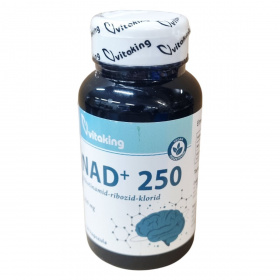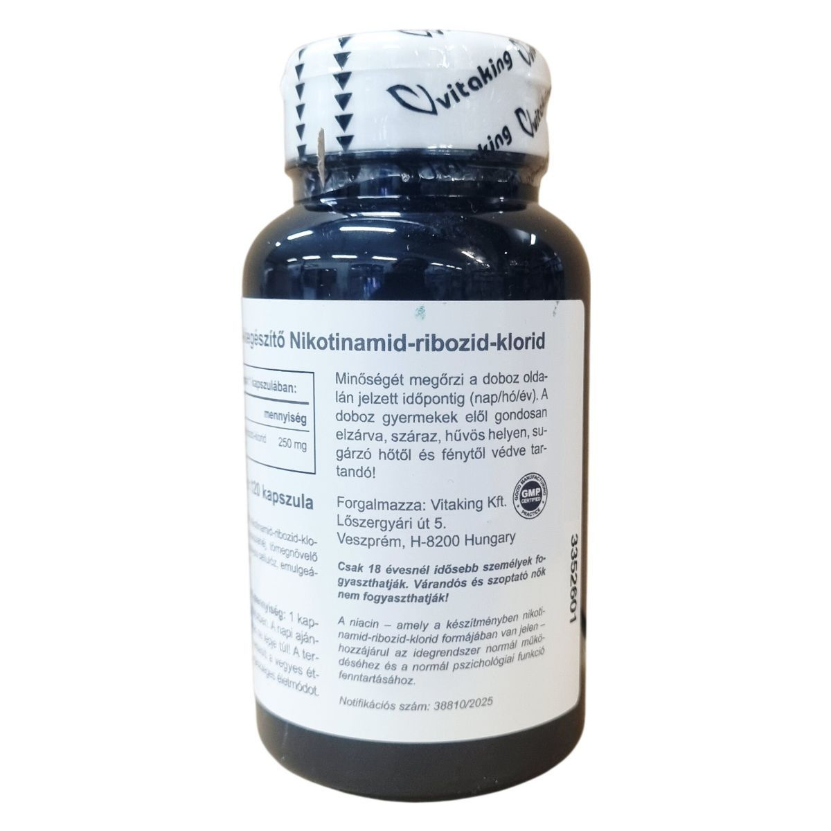A 120 db-os étrend-kiegészítő nikotinamid-ribozid-klorid hatóanyaggal, amely NAD+ prekurzor. A niacin – amely a készítményben nikotinamid-ribozid-klorid formájában van jelen – hozzájárul az idegrendszer normál működéséhez és a normál pszichológiai funkció fenntartásához. Tartalma: 60 kapszula. Minőségét megőrzi a doboz oldalán jelzett időpontig (nap/hó/év).