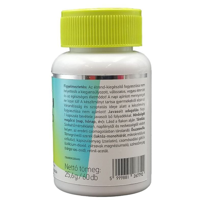 Figyelmeztetés: Az étrend-kiegészítő fogyasztása nem helyettesíti a kiegyensúlyozott, változatos, vegyes étrendet és az egészséges életmódot! A napi ajánlott mennyiséget ne lépje túl! A készítményt tartsa gyermekektől elzárva! Várandósság és szoptatás ideje alatt a készítmény fogyasztása nem ajánlott!