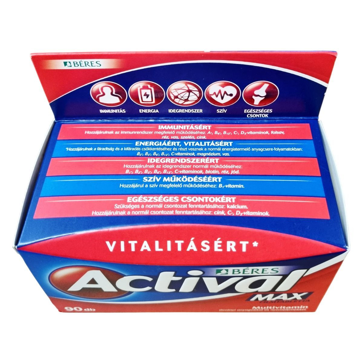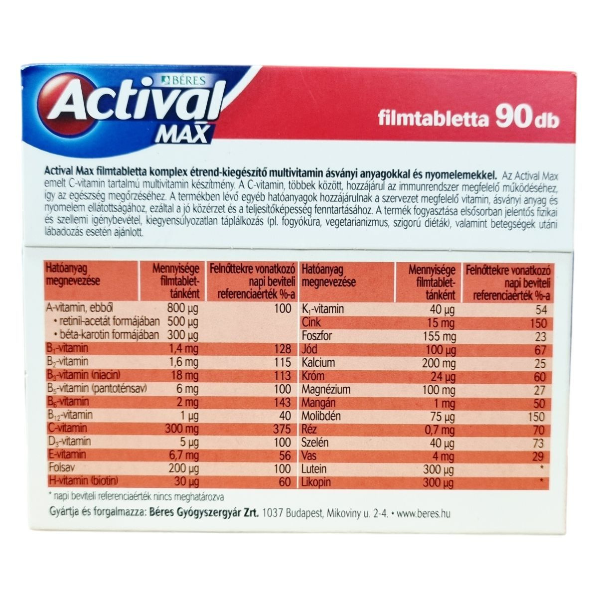 Az Actival Max filmtabletta komplex étrend-kiegészítő multivitamin ásványi anyagokkal és nyomelemekkel, emelt C-vitamin tartalommal.