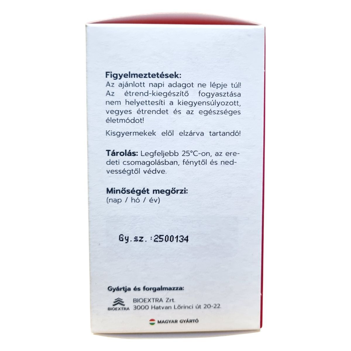 Az ajánlott napi adagot ne lépje túl! Az étrend-kiegészítő fogyasztása nem helyettesíti a kiegyensúlyozott, vegyes étrendet és az egészséges életmódot! Kisgyermekek elől elzárva tartandó!