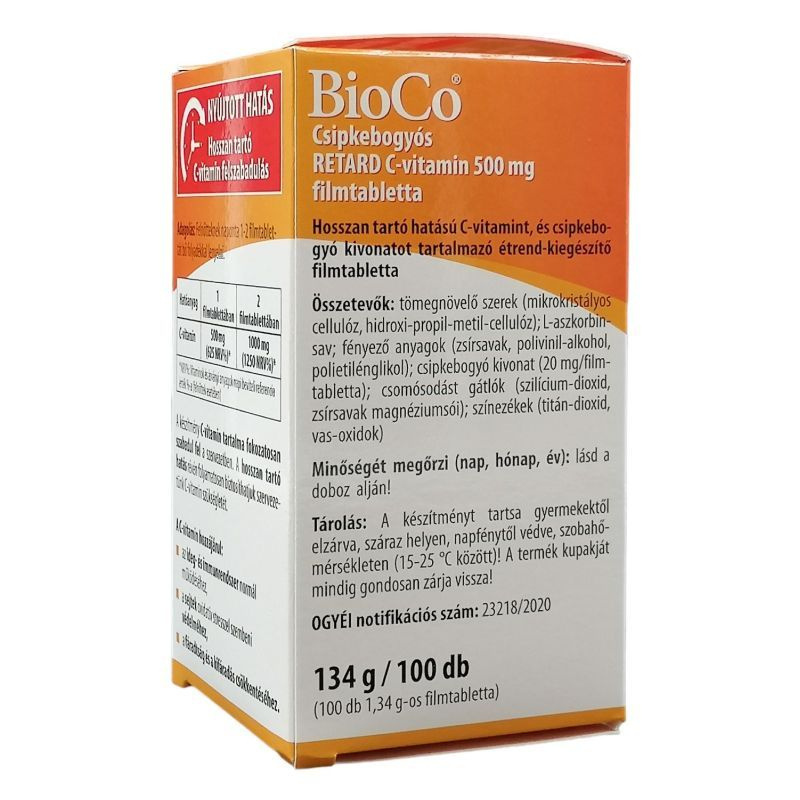 A készítmény C-vitamin tartalma fokozatosan szabadul fel a szervezetben. A hosszan tartó hatás révén folyamatosan biztosíthatjuk szervezetünk C-vitamin szükségletét. Hosszan tartó hatású C-vitamint és csipkebogyó kivonatot tartalmazó étrend-kiegészítő tabletta. A készítmény C-vitamin tartalma fokozatosan szabadul fel a szervezetben. A hosszan tartó hatás révén folyamatosan biztosíthatjuk szervezetünk C-vitamin szükségletét. A csipkebogyó jótékony, immunrendszert támogató hatása - elsősorban természetes C-vitamin tartalmának köszönhetően - régóta közismert.