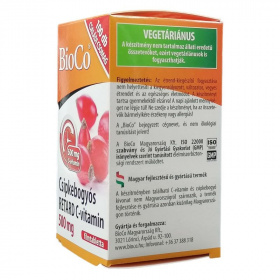 A C-vitamin erős antioxidáns hatású vitamin, nélkülözhetetlen a kollagénfehérje szintézishez, elősegíti a vas bélrendszerből történő felszívódását, az immunrendszer normális működését. Hozzájárul a káros oxidációs folyamatok, ezáltal a sejtek öregedésének gátlásához. A termék fogyasztása ajánlott vitaminhiányos, egyoldalú táplálkozás, dohányzás, kimerültség, általános fáradtság, fokozott C-vitamin szükséglet (terhesség, szoptatás, fogamzásgátló tabletta szedése) esetén, valamint betegség után, az immunrendszer erősítésére. Összetevők: L-aszkorbinsav; tömegnövelő szerek (hidroxi-propil-metil-cellulóz, mikrokristályos cellulóz); csomósodást gátló (magnézium-sztearát); csipkebogyó kivonat (20 mg/tabletta) Alkalmazási javaslat: Naponta 1-2 tablettát bő folyadékkal lenyelni. Nyelési nehézség esetén, a tabletta a felezőnyomat mentén széttörhető. Hatóanyagok: C-vitamin (aszkorbinsav): 500 mg. A termék nem tartalmaz állati eredetű összetevőt, ezért vegetáriánusok is fogyaszthatják. Nettó tömeg: 84 g / 60 db tabletta Minőségét megőrzi: a flakon alján jelzett hónap végéig. Tárolás: A készítményt tartsa gyermekektől elzárva, száraz, hűvös, sötét helyen! A termék kupakját mindig gondosan zárja vissza! Figyelmeztetés: Az étrend-kiegészítő fogyasztása nem helyettesíti a kiegyensúlyozott, változatos, vegyes étrendet és az egészséges életmódot! Az ajánlott napi mennyiséget ne lépje túl!