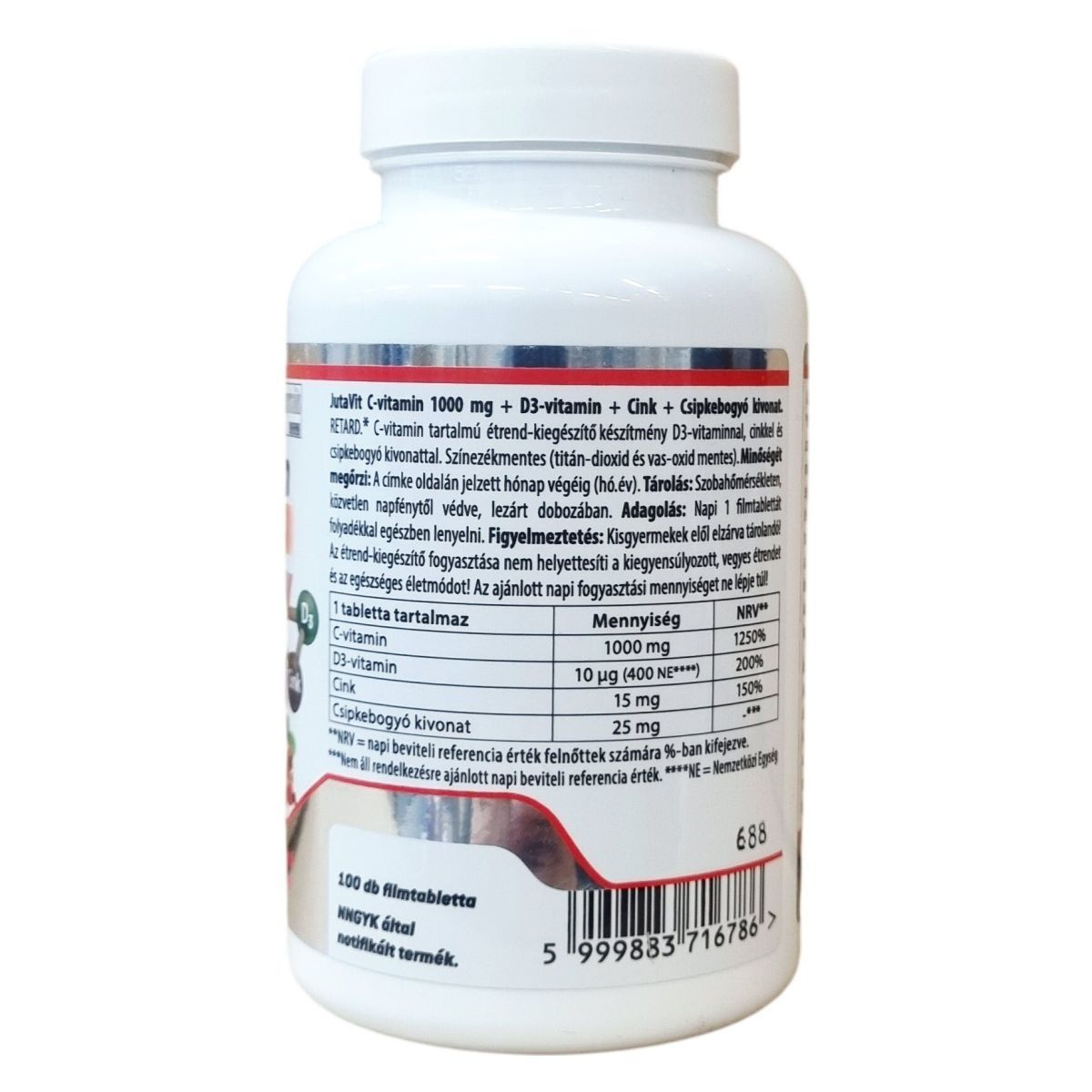 A JutaVit C-vitamin 1000 mg Retard egy C-vitamin tartalmú étrend-kiegészítő, mely D3-vitamint, cinket és csipkebogyó kivonatot is tartalmaz. Színezékmentes készítmény, amely nem tartalmaz titán-dioxidot és vas-oxidot. A termék napi egy filmtabletta formájában fogyasztható, amely támogatni segítheti a szervezet C-vitamin-, D-vitamin- és cink ellátását. Kisgyermekek elől elzárva kell tartani, és nem helyettesíti a változatos étrendet és egészséges életmódot.