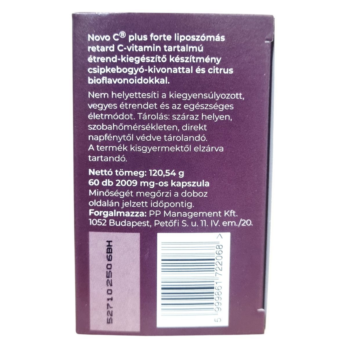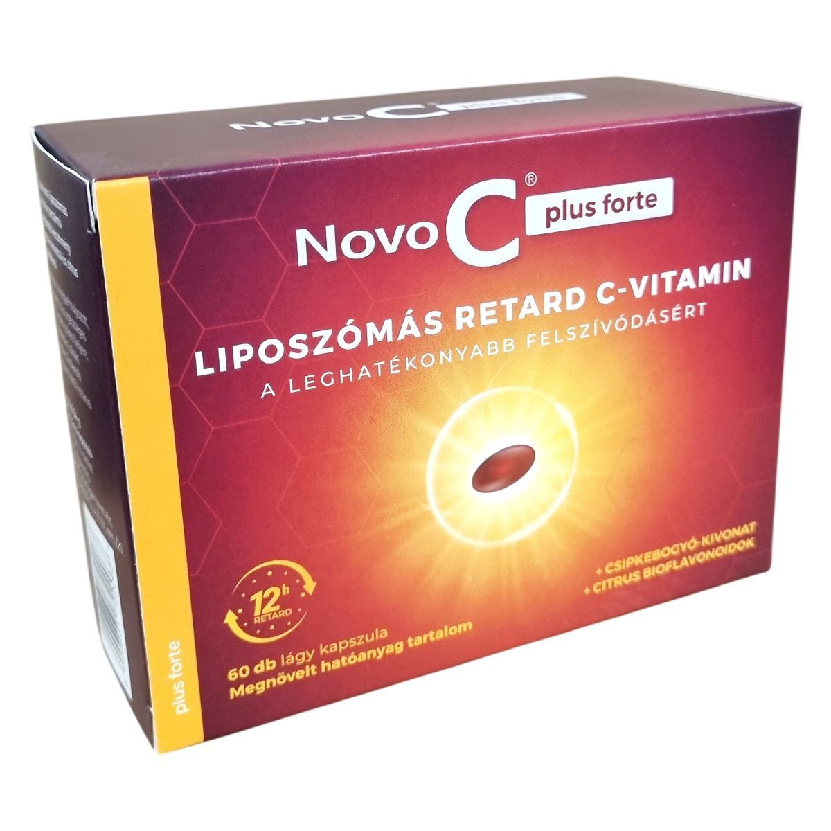 A Novo C® plus forte liposzómás retard C-vitamin készítmény természetes foszfolipid burkolattal készült, amely lehetővé teheti a C-vitamin könnyebb sejtekbe jutását és jobb hasznosulását. A C-vitamin hozzájárulhat az immunrendszer normál működéséhez, a sejtek oxidatív stresszel szembeni védelméhez, a fáradtság és kifáradás csökkentéséhez, az idegrendszer normál működéséhez, a pszichológiai funkciók fenntartásához, valamint a normál kollagénképződéshez, amely a porcok, erek, csontozat, fogíny és bőr egészségéért felelős. Továbbá fokozhatja a vas felszívódását, és támogathatja a normál energiatermelő anyagcsere-folyamatokat. A termék csipkebogyó-kivonatot és citrus bioflavonoidokat is tartalmaz, amelyek a C-vitamin hatását kiegészíthetik.