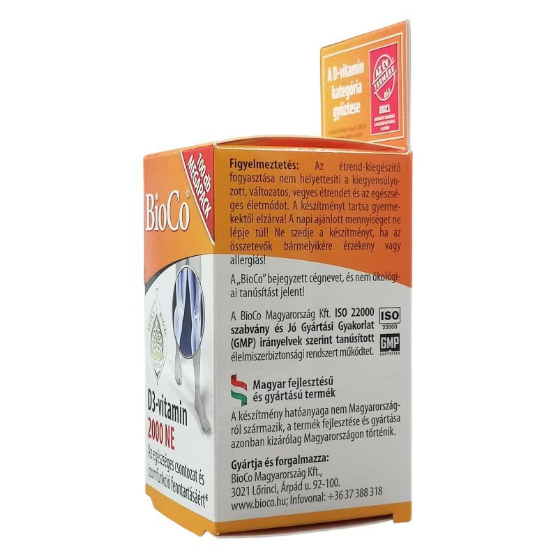 A D3-vitamin (kolekalciferol) egy zsírban oldódó vitamin és prohormon, amely a szervezetben aktív hormonszerű vegyületté alakul. A bőrben UVB-sugárzás hatására képződik, majd a májban és a vesében történő átalakulás után a kalcium- és foszfát-anyagcsere szabályozásában játszik szerepet. Hozzájárulhat a normál csontozat és fogazat fenntartásához, valamint támogathatja az immunrendszer megfelelő működését. Részt vesz a sejtosztódási folyamatok szabályozásában és az izomműködés fenntartásában is. Hiánya csökkent napfény-expozíció vagy elégtelen bevitel esetén alakulhat ki. Megfelelő adagolás mellett biztonságos, ugyanakkor túladagolása hiperkalcémiához vezethet. Egyéni egészségügyi állapot vagy gyógyszerszedés esetén javasolt szakemberrel konzultálni.