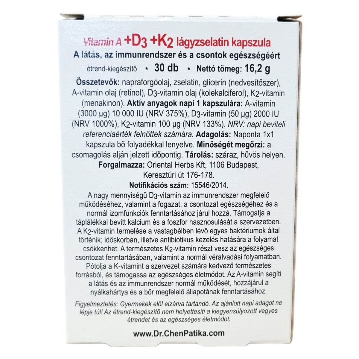 A látás, az immunrendszer és a csontok egészségéért.