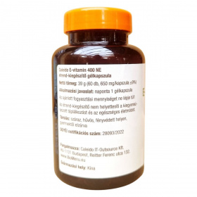 A Caleido E-vitamin 400 NE étrend-kiegészítő gélkapszula 60 darabos kiszerelésben kapható, és 39 g nettó tömegű. A termék DL-alfa-tokoferil-acetátot tartalmaz, amely E-vitamin forrásként szolgálhat. Az E-vitamin hozzájárulhat a sejtek oxidatív stresszel szembeni védelméhez. A termék napraforgómag-olajat, marhazselatint, glicerint és vizet is tartalmaz. A termék Kínából származik, és a Caleido IT-Outsource Kft. forgalmazza. Az ajánlott napi adag 1 gélkapszula, amelyet nem szabad túllépni. A termék tárolása száraz, hűvös, fényvédett helyen, gyermekektől elzárva javasolt.