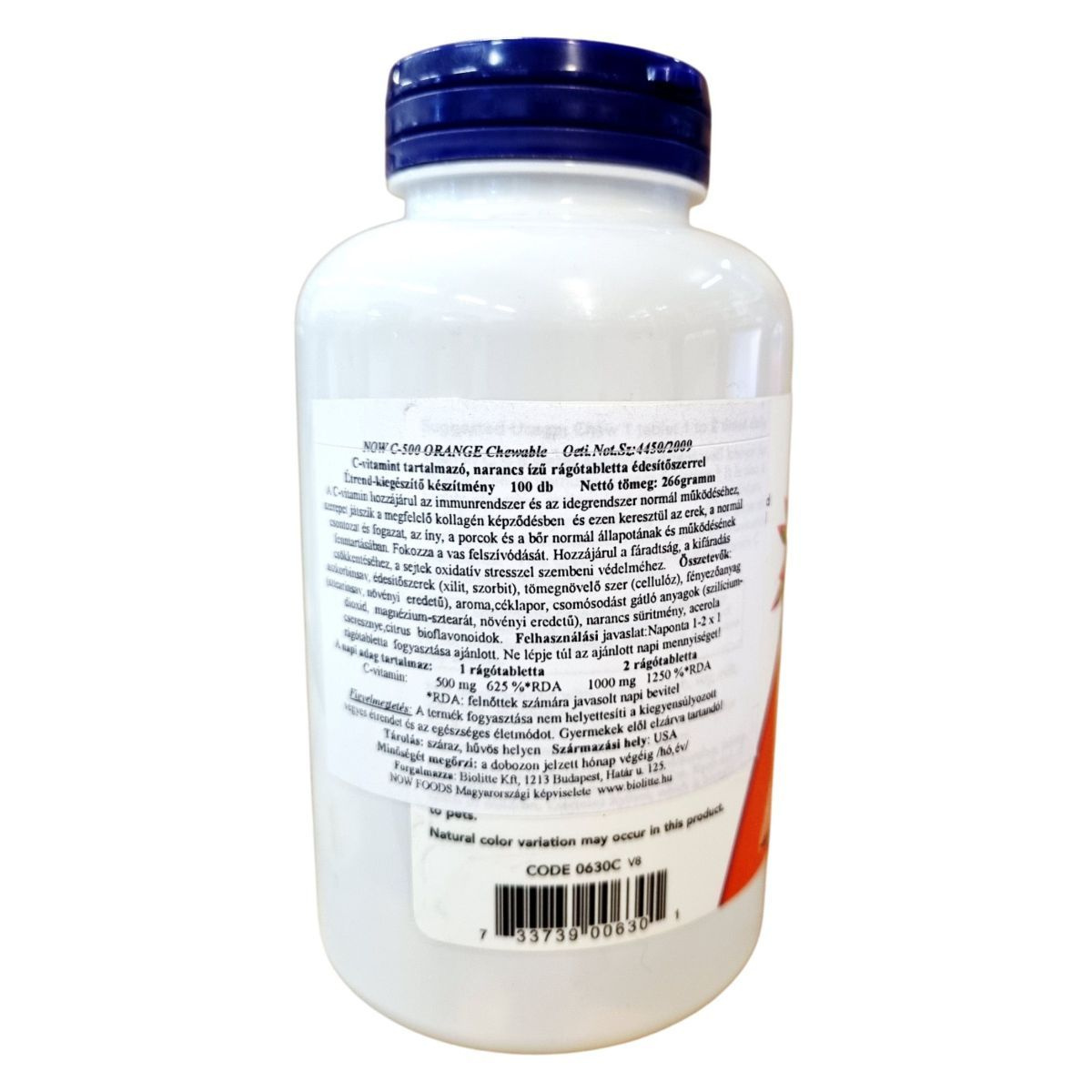 A NOW C-500 Orange Chewable rágótabletta a klasszikus C-vitamin kiegészítés egyik legkedveltebb formája. A természetes narancsaromával ízesített, édesítőszerekkel készült formula nemcsak hatékony antioxidáns védelmet nyújt, hanem kellemes ízével élménnyé teszi a napi vitaminpótlást. Vegán étrendbe is beilleszthető, glutén- és tejmentes összetétele révén széles körben fogyasztható. Ideális választás a mindennapi immunerősítéshez és a fáradtság csökkentéséhez. Kellemes ízű, könnyen fogyasztható formában biztosítja a napi C-vitamin bevitelt, miközben segíti az immunrendszer és az idegrendszer normál működését.