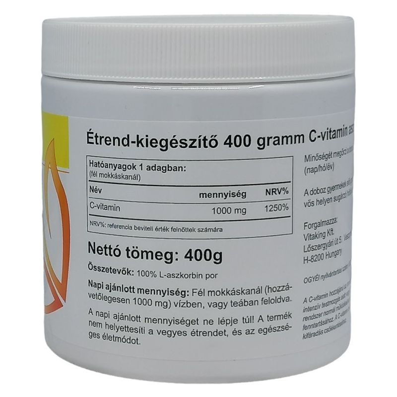 Nagy kiszerelésének köszönhetően igazán gazdaságos forma, jó ár-érték aránnyal bíró termék. A C-vitamin vízben oldódó, nagyhatású antioxidáns. Egyike a leggyakrabban szedett vitaminoknak. Az aszkorbinsav egy nagyon jól felszívódó por alapú C-vitamin forrás. Egyszerűen elkeverhető teában, vagy akár limonádé is készíthető belőle.