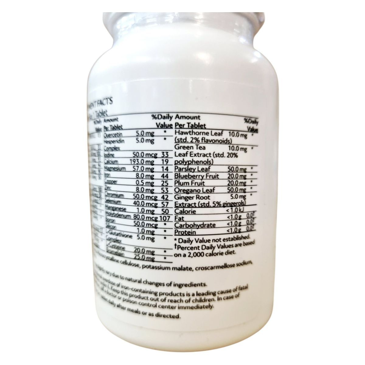 Microcrystalline cellulose, potassium malate, stearic acid, silica, croscarmellose sodium.