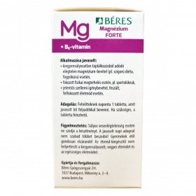 A Béres Magnézium Forte + B6-vitamin filmtabletta étrend-kiegészítő, amely hozzájárulhat az idegrendszer és az izmok normál működéséhez, a pszichológiai funkciók fenntartásához, valamint a fáradtság és a kimerültség csökkentéséhez. A magnézium szerepet játszik az energiatermelő anyagcsere-folyamatokban, támogatja a fehérjeszintézist és a sejtosztódást, míg a B6-vitamin hozzájárulhat az immunrendszer normál működéséhez. A termék napi 1 tabletta adagban biztosítja a szervezet számára szükséges mennyiségű magnéziumot és B6-vitamint, különösen hasznos fokozott fizikai vagy szellemi megterhelés, stresszes életmód esetén. Hazai gyártású, megbízható minőségű étrend-kiegészítő, amely támogatja a vitalitást és a mindennapi teljesítményt.