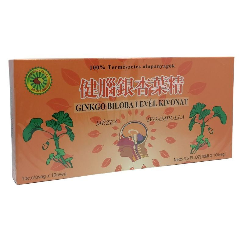 Tartalma: 10 db méhpempős Ginkgo biloba kivonat. Felhasználása: Az első osztályú Ginkgo levél kivonatot tartalmazó ivóampulla mind önmagában fogyasztva, mint teába keverve, segít a szellemi teljesítőképességünk fokozásában. Adagolás: naponta 1-2 ampulla elfogyasztása, reggel vagy este.
