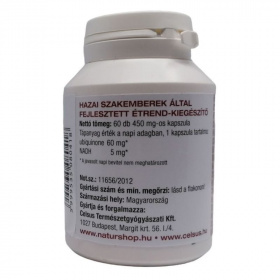 Elősegíthetik a normális vérnyomás megtartását, segíthetnek, ha aktívabb életet szeretne élni. Hazai szakemberek által fejlesztett étrend-kiegészítő. Összetevők: burgonya- és kukoricakeményítő, cellulóz (kapszula), ubiquinone (60 mg Q10), NADH (5 mg Q1). Adagolás: Felnőtteknek napi 1 kapszulát bőséges folyadékkal ajánlott bevenni. 3-6 hónap szedése után 1 hónap szünet beiktatása javasolt! Figyelmeztetés: Az étrend-kiegészítő nem helyettesíti a vegyes étrendet és az egészséges életmódot! Az ajánlott napi mennyiséget ne lépje túl! Gyermekek elől elzárva, szobahőmérsékleten tárolja!