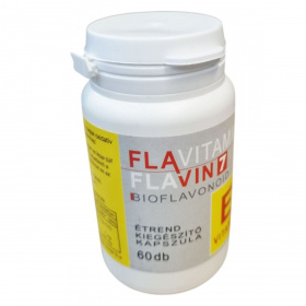 Az FLAVITAMIN FLAVIN7 BIOFLAVONOID ÉTREND KIEGÉSZÍTŐ KAPSZULA egy E-vitamint és bioflavonoidokat tartalmazó étrend-kiegészítő, amely 60 kapszulás kiszerelésben kapható. A termék polifenol tartalma révén hozzájárulhat a sejtek oxidatív stresszel szembeni védelméhez. Az összetevők között megtalálható a Flavin 7 bioflavonoid komplex, amely különböző gyümölcsök mag-héj szárítmányait tartalmazza. Az E-vitamin jelenléte támogathatja az antioxidáns hatásokat. A termék forgalmazója a Slimbios Kft., és a termék minőségét 2025. március 28-ig őrzi meg.