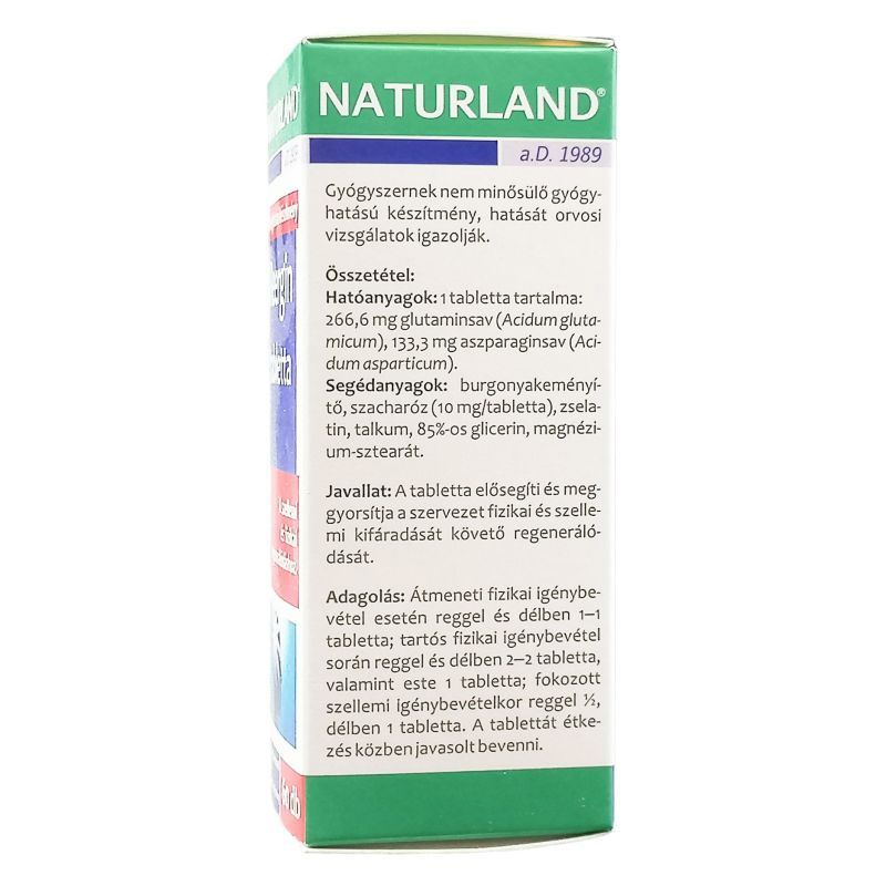 Összetétel: Hatóanyag: 1 tablettában: 266,6 mg glutaminsav (Acidum glutamicum), 133,3 mg aszparaginsav (Acidum asparticum). Segédanyag: burgonyakeményítő, zselatin, 85%-os glicerin, magnézium-sztearát, talkum, szacharóz. Gyógyszernek nem minősülő gyógyhatású készítmény, hatását szakirodalmi adatok igazolják. A kockázatokról és a mellékhatásokról olvassa el a betegtájékoztatót, vagy kérdezze meg kezelőorvosát, gyógyszerészét!