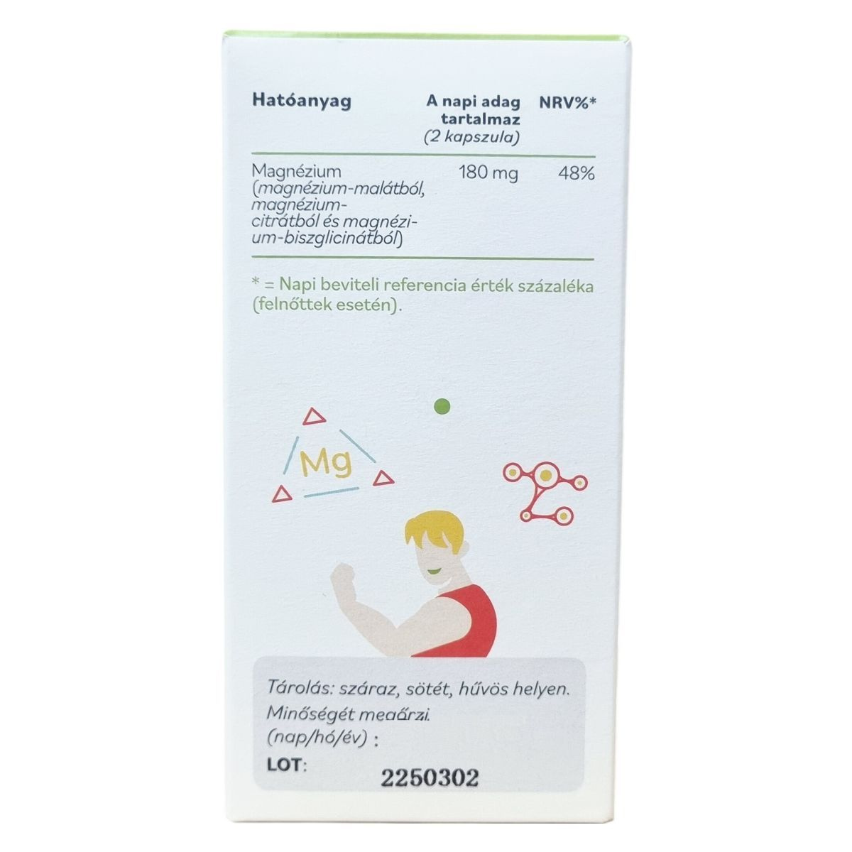 Magnézium 180 mg (magnézium-malátból, magnézium-citrátból és magnézium-biszglicinátból)
