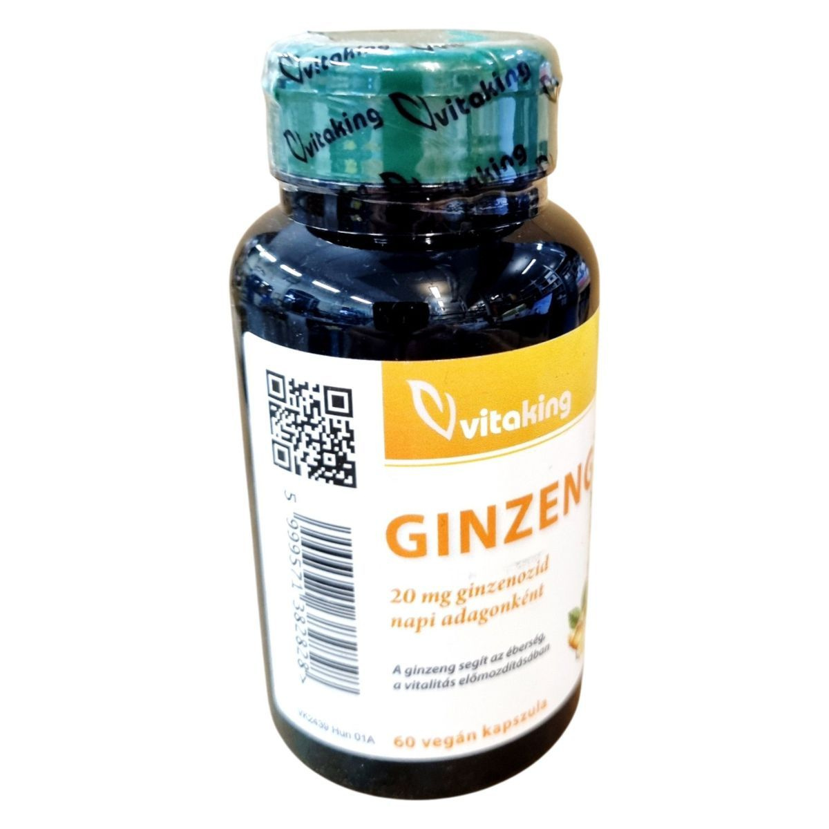 A Vitaking Ginzeng étrend-kiegészítő 60 vegán kapszulát tartalmaz, amely ginzeng kivonatot biztosít napi adagként. A ginzeng hozzájárulhat a természetes védekezéshez és az immunrendszer megfelelő működéséhez, segíthet az éberség és a vitalitás előmozdításában, valamint támogathatja a memória teljesítményét és a fizikai, szellemi teljesítmény fenntartását. A termék szedése nem helyettesíti a vegyes étrendet és az egészséges életmódot. Forgalmazza a Vitaking Kft., Veszprém, Magyarország.