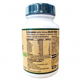 A B-komplex vízoldékony vitaminok csoportját jelenti, amely magában foglalja többek között a B1- (tiamin), B2- (riboflavin), B3- (niacin), B5- (pantoténsav), B6- (piridoxin), B7- (biotin), B9- (folát) és B12-vitamint (kobalamin). Ezek a mikrotápanyagok koenzimként vesznek részt a sejtszintű energiatermelésben, a szénhidrát-, zsír- és fehérje-anyagcserében, valamint az idegrendszer működésében és a vérképzésben. A B-vitaminok egymással szinergiában működnek, ezért kombinált bevitelük támogathatja az anyagcsere-folyamatok összehangolt működését. Vízoldékonyságuk miatt rendszeres pótlásuk indokolt lehet hiányos étrend vagy fokozott szükséglet esetén. A biztonságosság általában kedvező, de egyes komponensek nagy dózisban mellékhatásokat okozhatnak. Egyéni egészségügyi állapot vagy gyógyszerszedés esetén javasolt szakemberrel konzultálni.