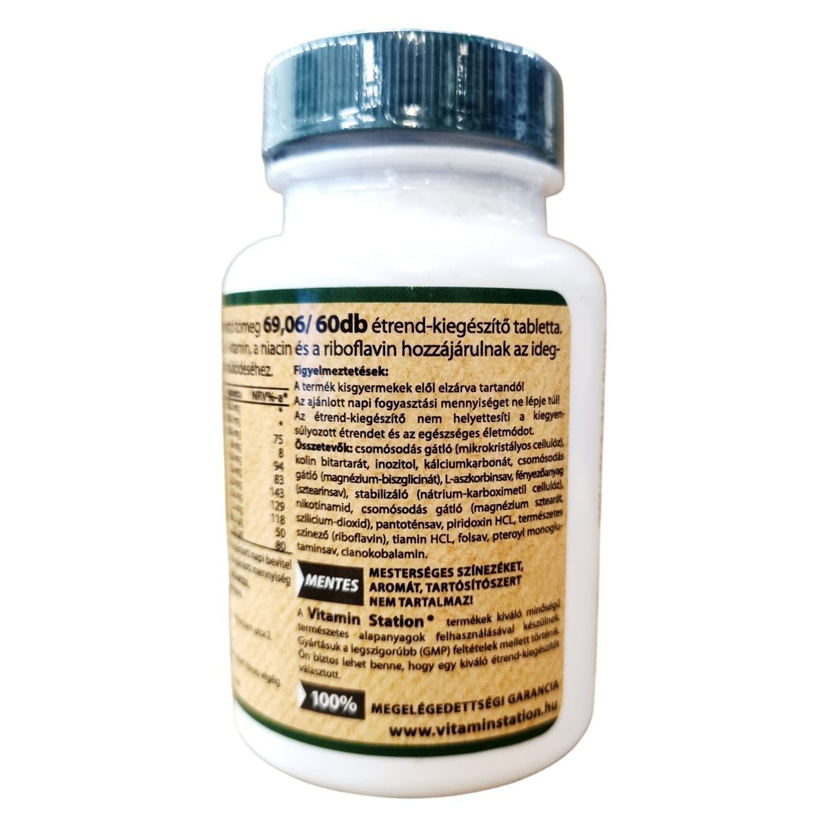 A készítmény B-vitaminokat, C-vitamint, magnéziumot, kolint és inozitolt tartalmaz. A termék mesterséges színezéket, aromát és tartósítószert nem tartalmaz. Kiváló minőségű alapanyagok felhasználásával, szigorú gyártási feltételek mellett készült.