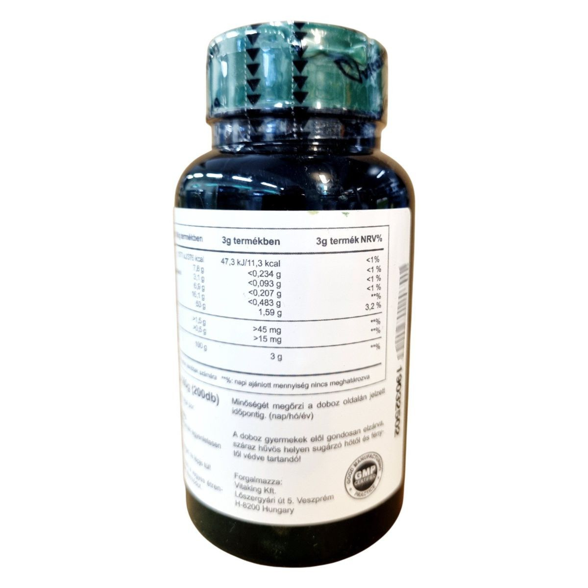 A Vitaking Chlorella alga tabletta 100% organikus chlorella algát tartalmaz, amely a Chlorella vulgaris fajból származik. A termék 200 tablettát tartalmaz, melyek együttes nettó tömege 100 g. A chlorella alga por gazdag fehérjében és karotinoidokban, amelyek hozzájárulhatnak a szervezet természetes méregtelenítő folyamataihoz és támogathatják az immunrendszert. A termék bio minősítéssel rendelkezik, és a napi ajánlott mennyiség 3 g, amely 6 tablettának felel meg. A termék tárolása száraz, hűvös helyen javasolt, sugárzó hőtől és fénytől védve.
