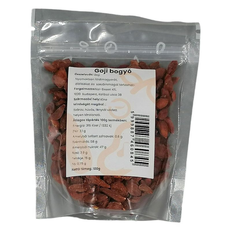 Összetevők: szárított goji bogyó (lycium), tartósítószer (kén-dioxid).