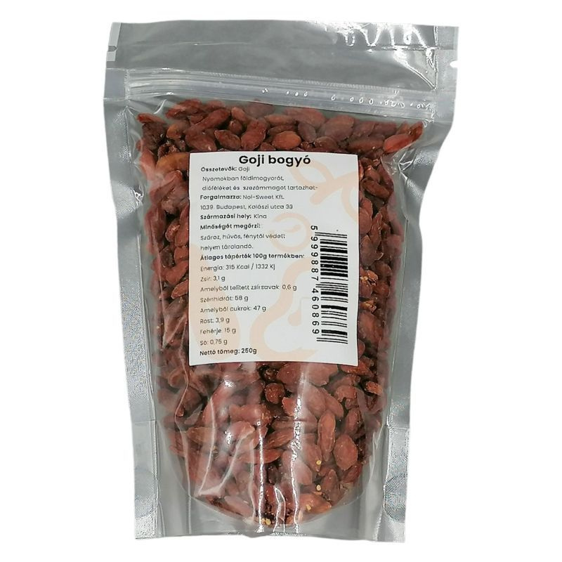 Összetevők: szárított goji bogyó (lycium), tartósítószer (kén-dioxid).