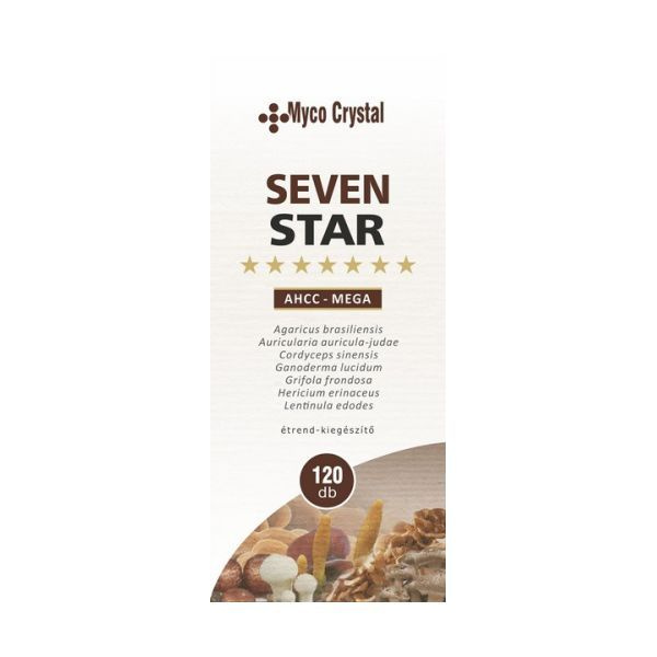 Seven Star: kínai hernyógomba, pecsétviaszgomba, bokrosgomba, brazil csiperkegomba, shiitake gomba, süngomba, Júdásfülegomba + AHCC kivonat + Flavin7 bioflavonoid complex.