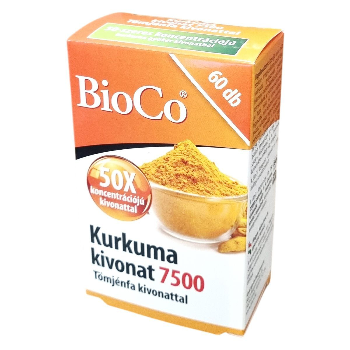 A BioCo Kurkuma kivonat 7500 Tömjénfa kivonattal kapszula egy magyar fejlesztésű és gyártású étrend-kiegészítő, mely kurkuma és tömjénfa kivonatot, valamint C- és E-vitaminokat tartalmaz. A termék 50-szeres koncentrációjú kurkuma kivonatot alkalmaz, amely 1 kapszulában 7,5 g kurkuma őrleménynek felel meg. A tömjénfa kivonat gazdag boswellin savban, amely az értékes hatóanyagok közé tartozik. A készítmény használatával az ízületek rugalmassága és komfortérzete hozzájárulhat az optimális egészség fenntartásához. A termék előállítása során kizárólag Magyarországon történik a gyártás és fejlesztés, bár a hatóanyagok nem Magyarországról származnak. A termék nem helyettesíti a kiegyensúlyozott étrendet és az egészséges életmódot, és bizonyos egészségügyi állapotok esetén, például epekövesség vagy véralvadási problémák esetén nem javasolt a használata. A kapszula gyártása az ISO 22000 és GMP előírásai szerint történik, garantálva a biztonságos és magas minőségű előállítást.