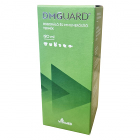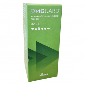 Az állatgyógyászati gyógyhatású DMGUARD® termék különféle állatok, így kutyák, macskák, madarak, halak és kisemlősök részére készült roboráló és immunerősítő készítmény. Az adagolás az állat testtömegéhez igazodik, és szükség esetén megkétszerezhető. A termék alkalmas lehet daganatos betegségek kiegészítő kezelésére. A készítmény N,N-dimetil-glicint, U vitamint (metil-metionint) és B12 vitamint tartalmaz meghatározott koncentrációban. A termék tárolása során fontos, hogy fénytől védve, legfeljebb 25°C-on legyen, és gyermekek elől elzárva kell tartani. A kristályosodás természetes jelenség, amely nem befolyásolja a termék minőségét vagy hatását. Az oldat színe és szaga gyártási tételenként változhat, ami szintén nem hat a minőségre. A termék kizárólag állategészségügyi vagy állatápolási célra használható.