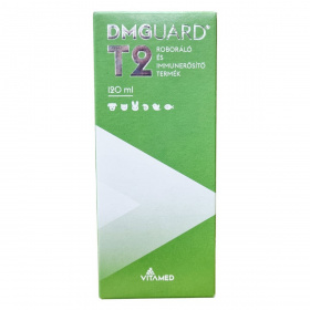 A DMGUARD® T2 egy speciális, roboráló és immunerősítő hatású állatgyógyászati termék, amely különböző állatfajok, például kutyák, macskák, madarak, halak és kisebb emlősök számára készült. A készítmény hatóanyagai között megtalálható az N,N-dimetil-glicin, a taurin és az orotsav, amelyek a szervezet egészségének támogatását célozzák. Az adagolás az állat testtömegéhez igazodik, és a napi adagot javasolt két részre osztva, akár táplálékhoz keverve beadni, hogy a maximális hatékonyság érhető el. Szükség esetén az adagot meg lehet kétszerezni, különös tekintettel daganatos betegségek kiegészítő kezelésére. A termék használata kizárólag az állatok egészségének megőrzésére és ápolására szolgál, emberi fogyasztásra nem alkalmas, valamint gyermekektől elzárva kell tartani. Tárolását fénytől védve, maximum 25°C-on kell biztosítani. A termék természetes tulajdonsága, hogy kristályosodhat, illetve a színe és illata gyártási tételenként változhat, azonban ez nem befolyásolja annak minőségét és hatékonyságát. A csomagolás FSC minősítésű újrahasznosított papírból készült, amely környezetbarát megoldást jelent.