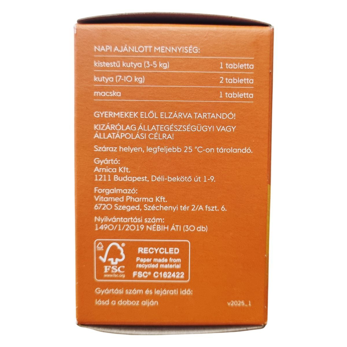 Száraz helyen, legfeljebb 25 °C-on tárolandó.