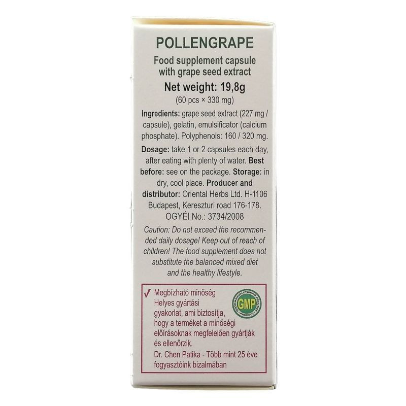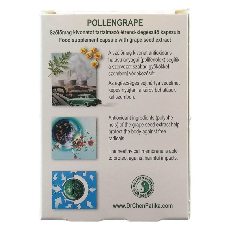 Pollengrape kapszula, amely antioxidáns hatású összetevőkkel támogatja az immunrendszer működését és a szervezet méregtelenítését.