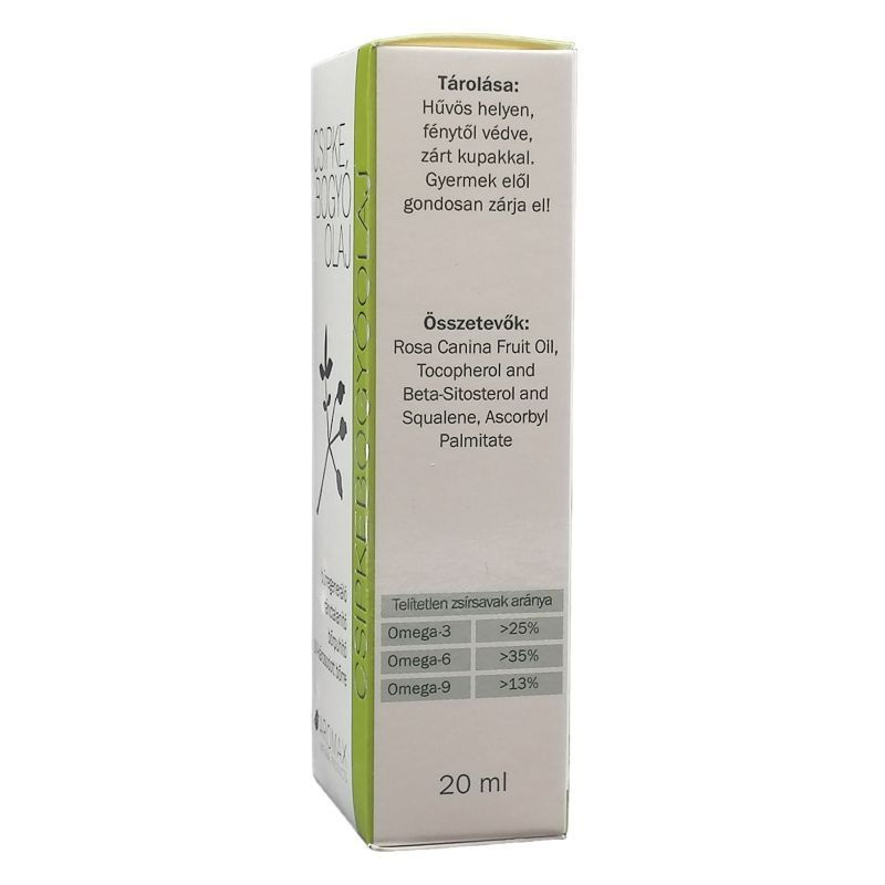 A csipkebogyó magjából hidegsajtolással előállított, finomítatlan olaj intenzív ápolást biztosít a száraz, élettelen bőrnek.