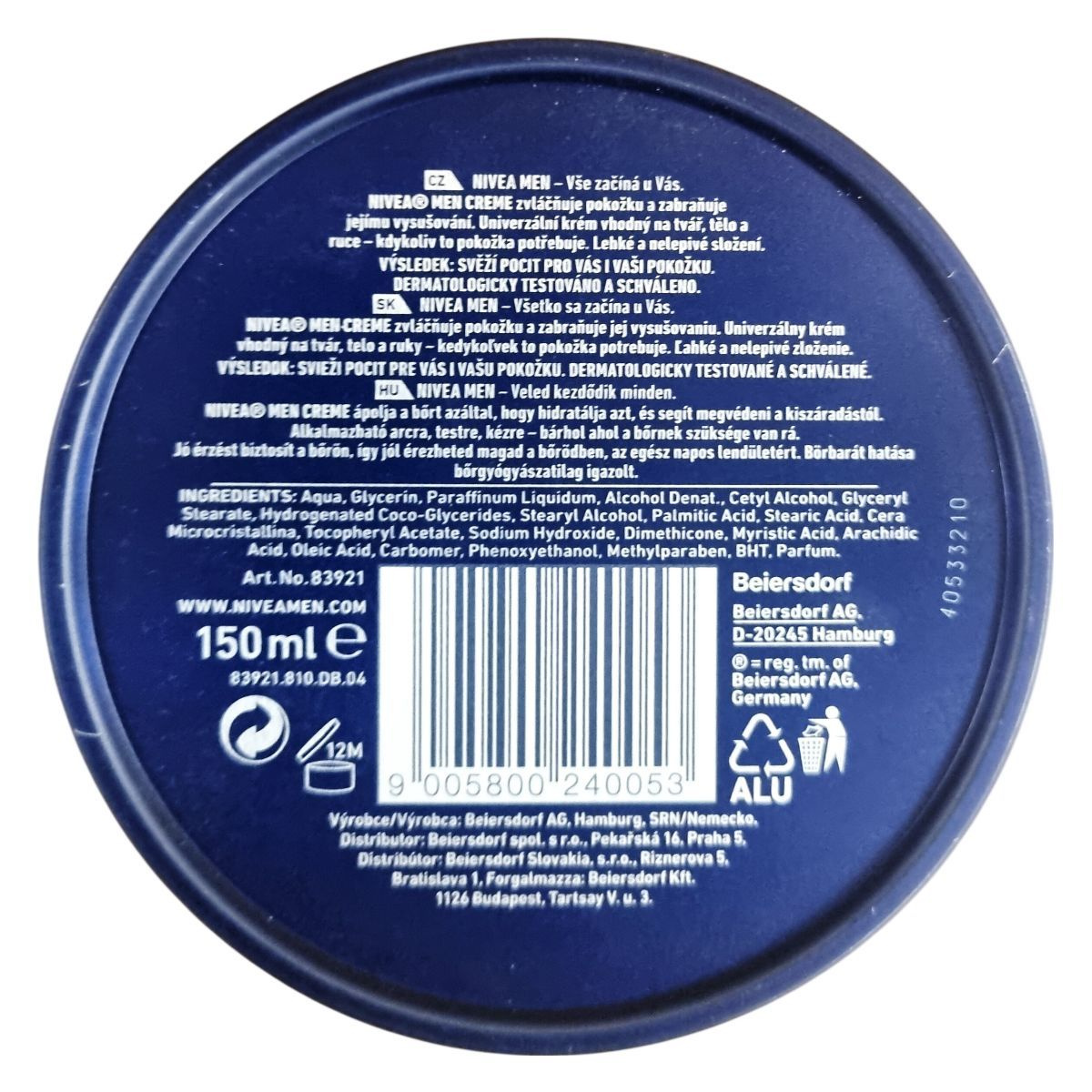 A NIVEA MEN CREME hidratálja és puhítja a bőrt, valamint megakadályozza annak kiszáradását. Univerzális készítmény, melyet arcra, testre és kézre egyaránt alkalmazhatunk, könnyű és nem ragadós formulája bármikor friss érzetet biztosít. Használata révén jól érezhetjük magunkat a bőrünkben, támogatva egész napos komfortérzetünket. A termék bőrbarát hatását bőrgyógyászati tesztek igazolják. A gyártó Beiersdorf AG, Hamburg, Németország, a forgalmazók pedig a Beiersdorf spol. s r.o. Csehországban, Beiersdorf Slovakia s.r.o. Szlovákiában, illetve a Beiersdorf Kft. Magyarországon. A termék 150 ml kiszerelésben érhető el.