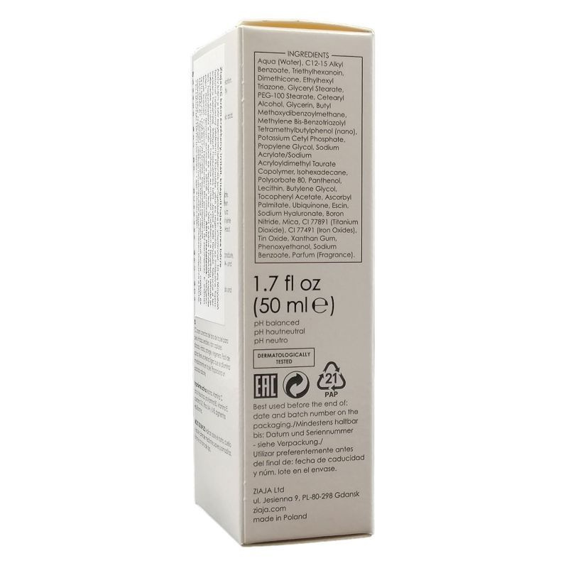 Javítja a bőr tónusát, fokozza a természetes színárnyalatát. Csillapítja az irritációt. Csökkenti a fáradtság látható jeleit, használatától a bőr ápolt és ragyogó lesz. Véd a káros UVA/UVB sugárzás ellen. Könnyű felvinni, azonnal a bőrbe szívódik. Bőrgyógyászatilag és allergológiailag tesztelt. Vadgesztenye kivonat, C-vitamin, hialuronsav, B5 provitamin, E-vitamin, Q10 koenzim, UVA és UVB szűrők
