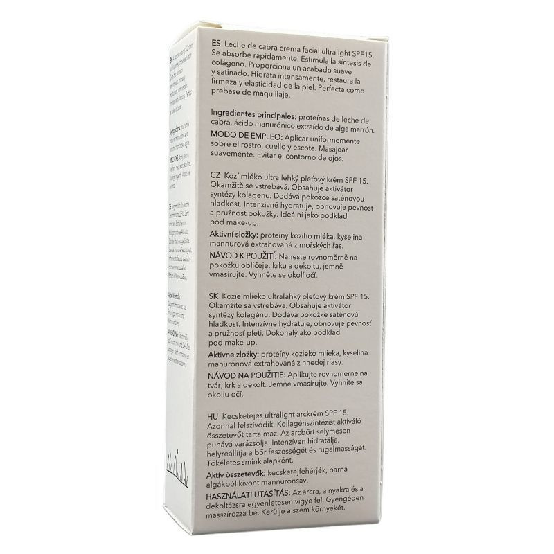 Azonnal a bőrbe szívódik, nem hagy zsíros érzetet a bőrön. Kollagén szintézist aktiváló összetevőt tartalmaz. Az arcbőrt selymesen puhává varázsolja. Intenzíven hidratál, visszaállítja a bőr feszességét és rugalmasságát. Megvédi a bőrt a napfény káros UV-sugárzásától. Nyugtatja az irritált bőrt. Finom illatának és könnyű állagának köszönhetően frissesség érzetet nyújt. Tökéletesen használható sminkalapnak is. Kecsketej proteinek, barna algából kivont mannuronsav származék, E-vitamin.