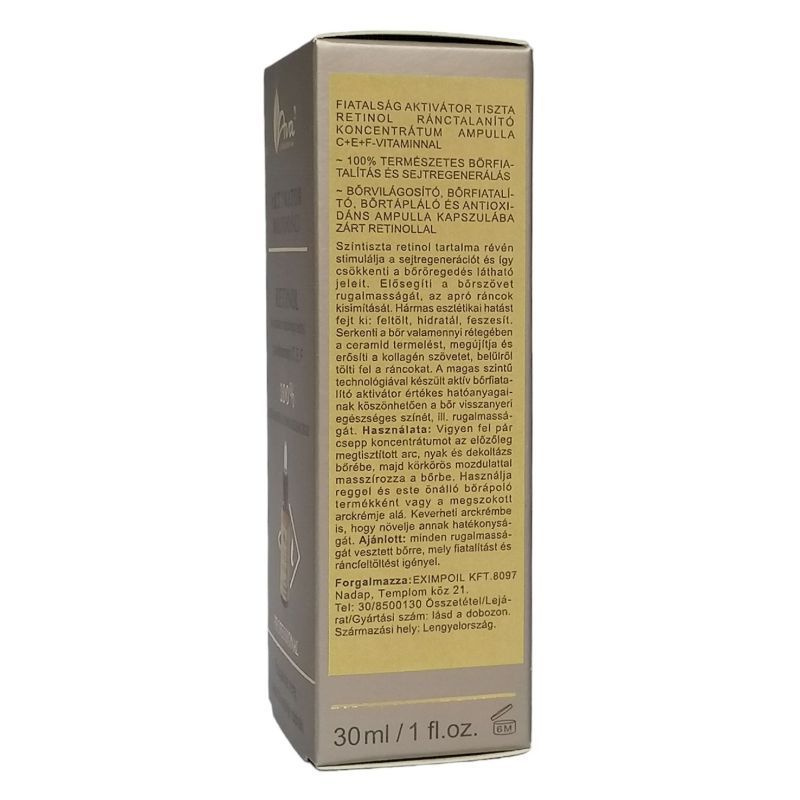 Színtiszta retinol tartalma révén stimulálja a sejtregenerációt és így csökkenti a bőröregedés látható jeleit.