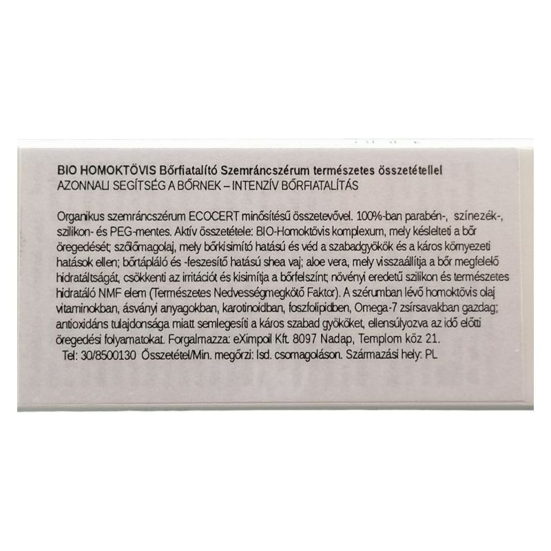 AZONNALI SEGÍTSÉG A BŐRNEK - INTENZÍV BŐRFIATALÍTÁS Organikus szemráncszérum ECOCERT minősítésű összetevővel. 100%-ban parabén-, ásványiolaj-, paraffin-, színezék-, tartósítószer-, szilikon- és PEG-mentes.