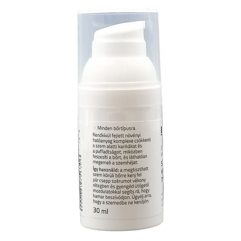 Rendkívül fejlett növényi hatóanyag komplexe csökkenti a szem alatti karikákat és a puffadtságot, miközben feszesíti a bőrt, és láthatóan megemeli a szemhéjat.