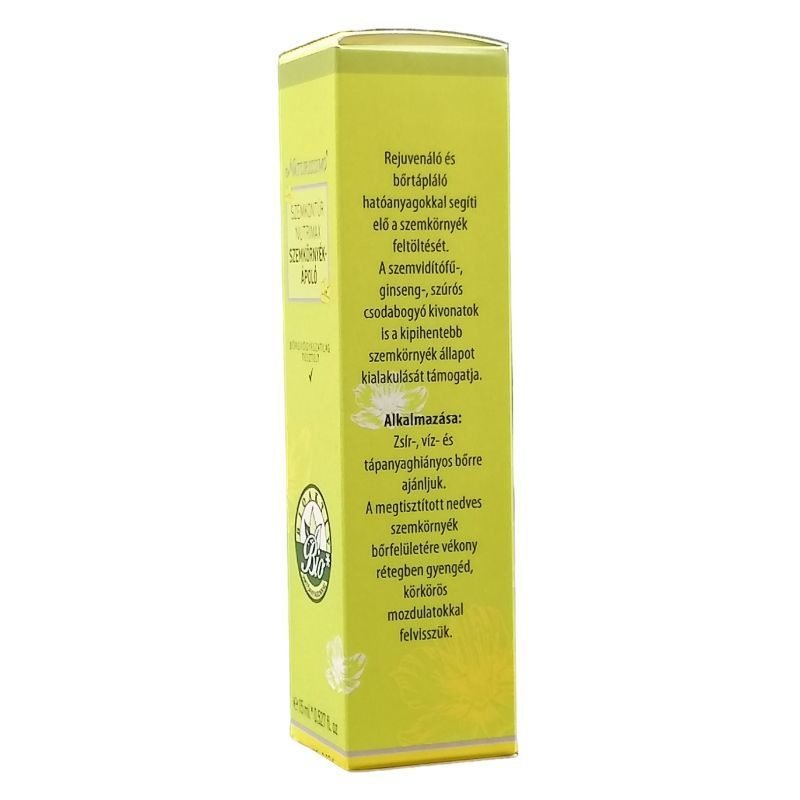A szemvidítófű kivonata is a kipihentebb szemkörnyék állapot kialakulását segíti. Alkalmazása: Bármely bőrtípusra használható. A megtisztított nedves szemkörnyék bőrfelületére gyengéd, körkörös mozdulatokkal felvisszük.