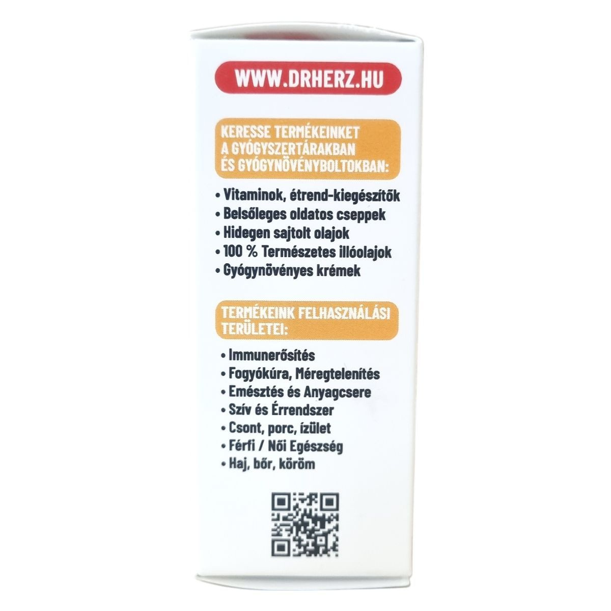 A Dr. Herz egy étrend-kiegészítőket és vitaminokat forgalmazó márka, amely különböző tápanyagokat, növényi kivonatokat és funkcionális összetevőket tartalmazó készítményeket kínál. A Dr. Herz az étrend-kiegészítők piacán ismert márkanév, amely elsősorban a következő termékkategóriákkal kapcsolódik össze: vitaminok és ásványi anyagok, növényi kivonatok, speciális tápanyagkészítmények, funkcionális olajok és komplex étrend-kiegészítők.